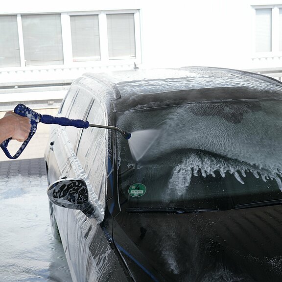 Weiches Wasser mit aktivem Reinigungsmittel aus der blauen Lanze.