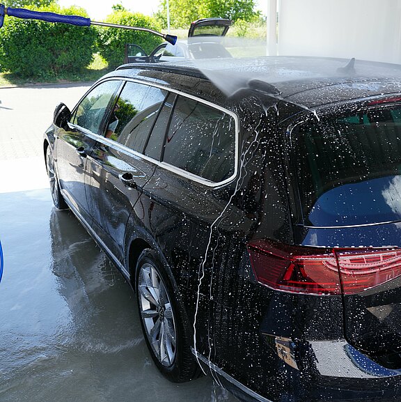 Überschüssige Wachsreste vom Lack spülen.